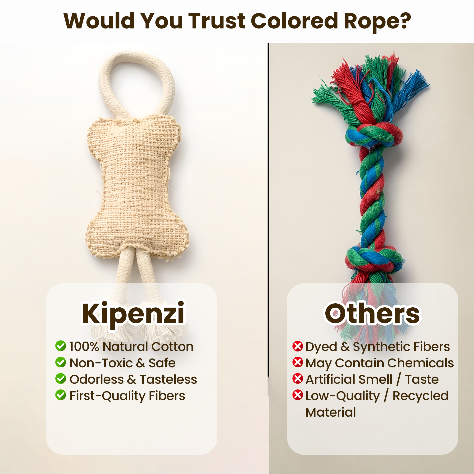 Made from 100% natural cotton, safe for chewing with no chemicals.